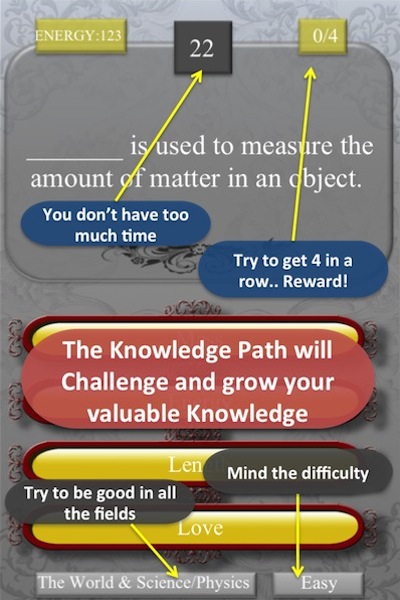Some games take learning and 'brain-training' too seriously, and by doing this they transform gaming and playing into work and studying.. Some games don't offer any educational or useful content, and are just made of long and endless repetitions of similar activities... KWEST is a hybrid game that brings you the best of different worlds: A challenging, meaningful, and entertaining adventure, that let's learn new things, and exercise your mental muscles.