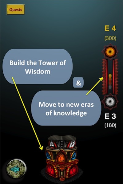 You can develop and advance your character, and acquire resources, by going through the Brain Arena or the Knowledge Path, where you receive Gold and KNOPs for your achievements and improve your Karma if you're that good. Decide what tools you want to take on your quest, and be prepared! The tower of Wisdom may not be very easy to rebuild, and the Quests will remain hidden if you aren't powerful enough, but there are magical resources that might help: The Key of Energy, The Hammer of Strength, The Knot of Knowledge, The Oracle, The Well, The Tree...