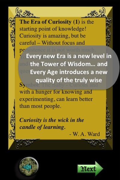 KWEST is a magical adventure that requires you to collect resources, advance through the eras, rebuild the lost mystical tower, and solve a set of mysteries... The catch, however, is that game play in KWEST not a mindless activity of shooting objects or jumping above obstacles, it is a set of challenges and activities that will expand and test your knowledge, and exercise your brain, while your work on achieving your goals and beating the game.